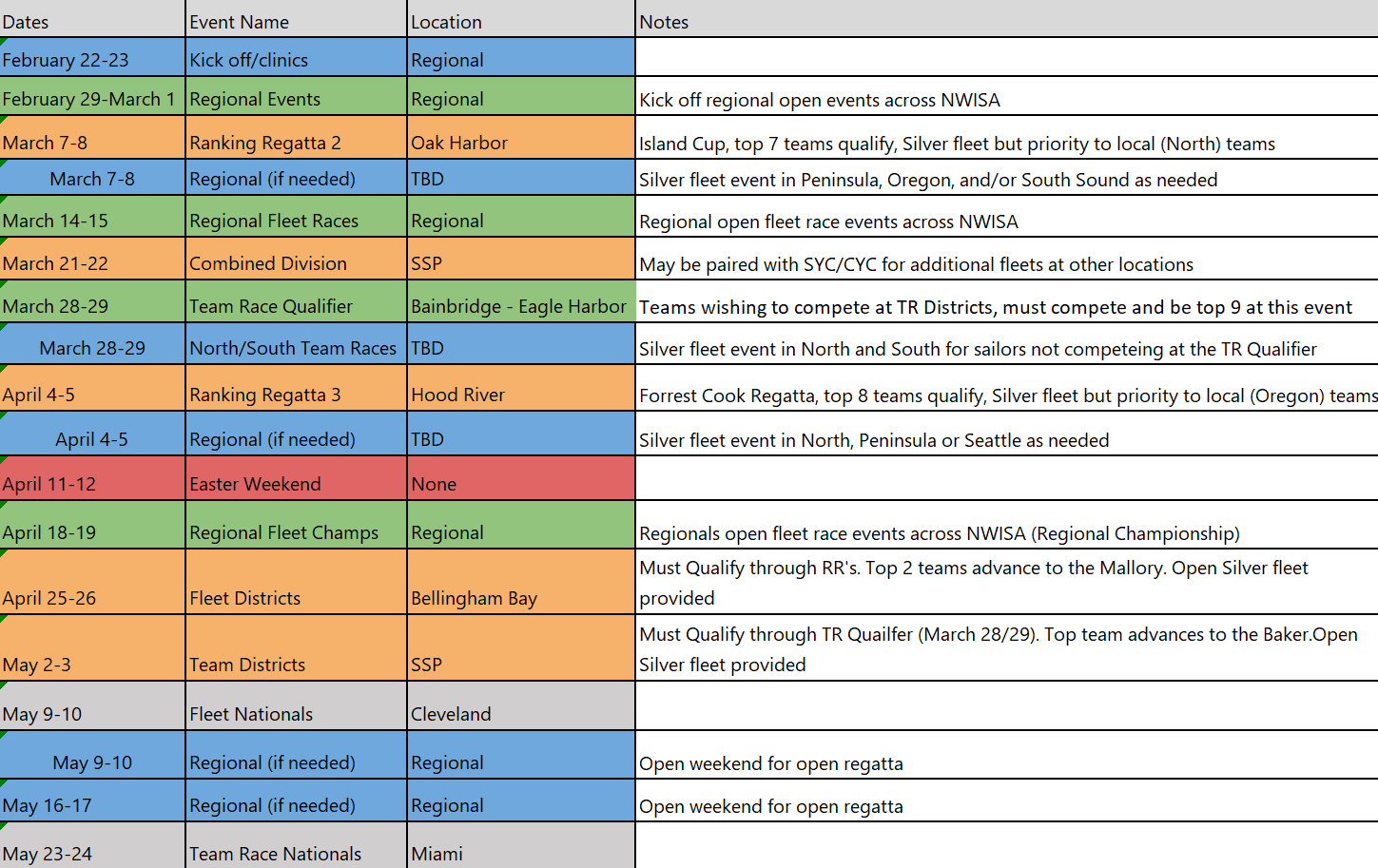 Regional events (green and blue) are being planned regionally. Stay tuned for hosts/venues or contact your regional coordinator for more info.